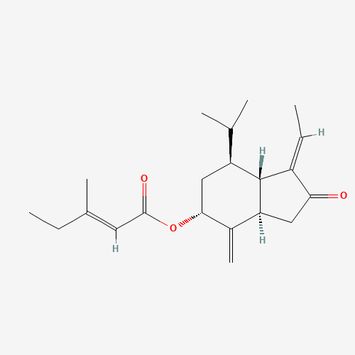 - Synonyms:CHEMBL4783476;DTXSID001106059;(1E,3aR,5R,7S,7aS)-1-Ethylideneoctahydro-4-methylene-7-(1-methylethyl)-2-oxo-1H-inden-5-yl (2E)-3-methyl-2-pentenoate;(3aalpha,7abeta)-1-[(Z)-Ethylidene]-4-methylene-5alpha-(3-methyl-2-pentenoyloxy)-7beta-isopropylhydrindane-2-one;237407-01-1