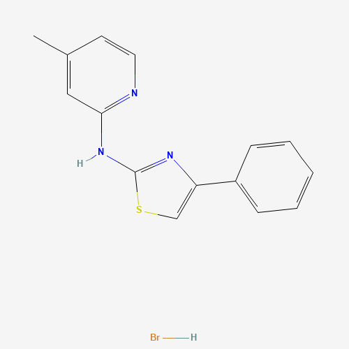 - Synonyms:(4-Methyl-pyridin-2-yl)-(4-phenyl-thiazol-2-yl)-amine;5931-29-3;N-(4-methylpyridin-2-yl)-4-phenyl-1,3-thiazol-2-amine;hydrobromide;MLS001209393;SMR000516487;Cambridge id 5931293;CHEMBL1480814;DTXSID60386958