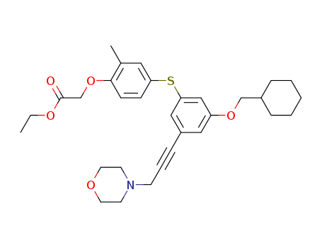 - Synonyms:{4-[3-cyclohexylmethoxy-5-(3-morpholin-4-yl-prop-1-ynyl)-phenyl-sulfanyl]-2-methyl-phenoxy}-acetic acid ethyl ester