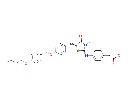 - Name: (4-(3-methyl-5-(4-(4-(1-methylbutoxy)benzyloxy)benzylidene)-4-oxothiazolidin-2-ylideneamino)phenyl)acetic acid