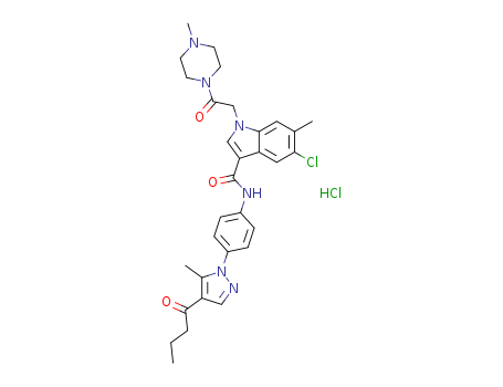 - Synonyms:[4-(4-butyryl-5-methyl-pyrazol-1-yl)phenyl]-5-chloro-6-methyl-1-[2-(4-methyl-piperazin-1-yl)-2-oxoethyl]-1H-indole-3-carboxamide hydrochloride