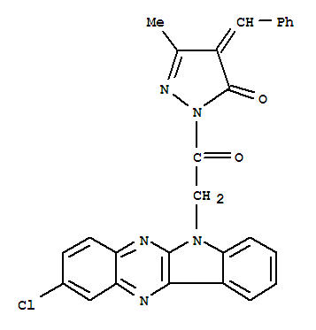 - Name: (4E)-2-[(2-chloro-6H-indolo[2,3-b]quinoxalin-6-yl)acetyl]-5-methyl-4-(phenylmethylidene)-2,4-dihydro-3H-pyrazol-3-one