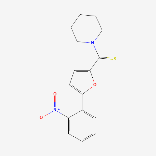 - Synonyms:301338-94-3;(5-(2-nitrophenyl)furan-2-yl)(piperidin-1-yl)methanethione;[5-(2-nitrophenyl)furan-2-yl]-piperidin-1-ylmethanethione;1-[5-(2-nitrophenyl)furan-2-carbothioyl]piperidine;[5-(2-nitrophenyl)furan-2-yl](piperidin-1-yl)methanethione;Oprea1_727739;MLS000768040;CHEMBL1361502;DTXSID501333544;HMS2798K18;STK952209;AKOS002186335;SMR000431352;Z56176407;F0494-0154;[5-(2-Nitro-phenyl)-furan-2-yl]-piperidin-1-yl-methanethione