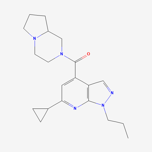 - Synonyms:938018-23-6;DTXSID301110675;AKOS024271888;(6-Cyclopropyl-1-propyl-1H-pyrazolo[3,4-b]pyridin-4-yl)(hexahydropyrrolo[1,2-a]pyrazin-2(1H)-yl)methanone;3,4,6,7,8,8a-hexahydro-1H-pyrrolo[1,2-a]pyrazin-2-yl-(6-cyclopropyl-1-propylpyrazolo[3,4-b]pyridin-4-yl)methanone;6-cyclopropyl-4-(hexahydropyrrolo[1,2-a]pyrazin-2(1H)-ylcarbonyl)-1-propyl-1H-pyrazolo[3,4-b]pyridine