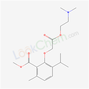 - Synonyms:Acetic acid,(6-isopropyl-2-methoxycarbonyl-3-methylphenoxy)-,2-(dimethylamino)ethyl ester;methyl 2-[2-(2-dimethylaminoethyloxy)-2-oxoethoxy]-6-methyl-3-propan-2-ylbenzoate;p-Cymene-2-carboxylic acid,3-(2-dimethylamino)ethoxycarbonylmethoxy-,methyl ester;