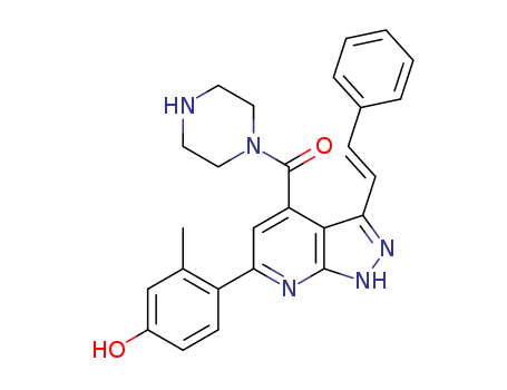 - Name: [6-(4-hydroxy-2-methyl-phenyl)-3-((E)-styryl)-1H-pyrazolo[3,4-b]pyridin-4-yl]-piperazin-1-yl-methanone