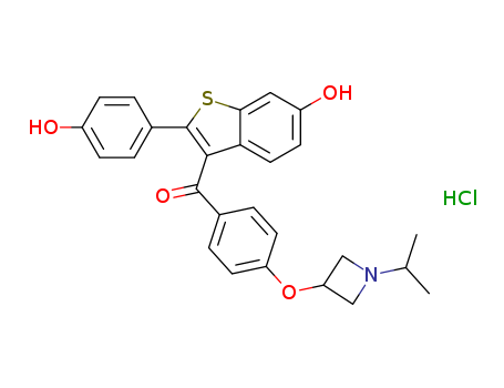 - Name: (6-hydroxy-2-(4-hydroxyphenyl)benzo[b]thiophen-3-yl)(4-(1-isopropylazetidin-3-yloxy)phenyl)methanone hydrochloride