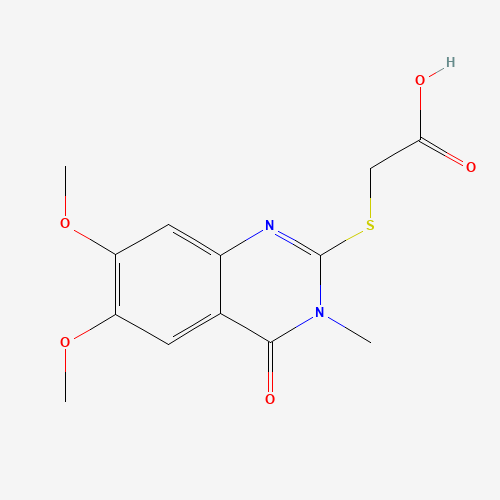 - Synonyms:886500-86-3;2-((6,7-Dimethoxy-3-methyl-4-oxo-3,4-dihydroquinazolin-2-yl)thio)acetic acid;DTXSID701141523;(6,7-Dimethoxy-3-methyl-4-oxo-3,4-dihydro-quinazolin-2-ylsulfanyl)-acetic acid;2-((6,7-Dimethoxy-3-methyl-4-oxo-3,4-dihydroquinazolin-2-yl)thio)aceticacid;2-[(3,4-Dihydro-6,7-dimethoxy-3-methyl-4-oxo-2-quinazolinyl)thio]acetic acid;2-[(6,7-dimethoxy-3-methyl-4-oxo-3,4-dihydroquinazolin-2-yl)sulfanyl]acetic acid