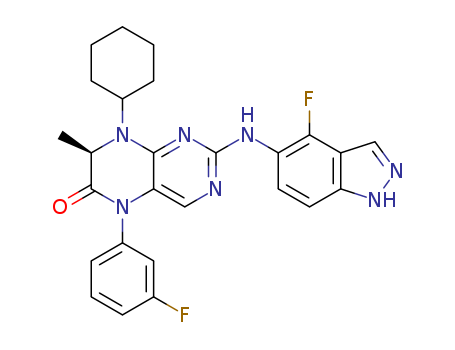 (7R)-8-cyclohexyl-2-[(4-fluoro-1H-indazol-5-yl)amino]-5-(3-fluorophenyl)-7-methyl-7,8-dihydropteridin-6(5H)-one(1435459-43-0)