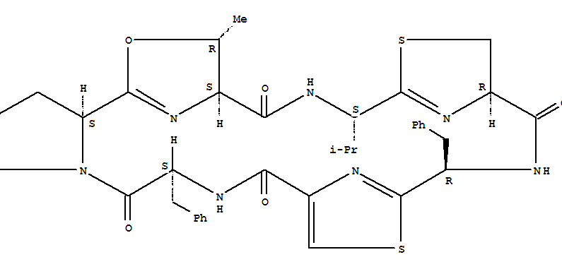 - Synonyms:Ulicyclamide,7-de(1-methylpropyl)-10,11-dihydro-7-(1-methylethyl)-36-phenyl-, (7R,11R,14S)-;3H,12H-4,1:11,8:18,15-Trinitrilo-1H-pyrrolo[2,1-c][1,11,18,4,7,14,21]oxadithiatetraazacyclotetracosine,ulicyclamide deriv.;3H,12H-4,1:11,8:18,15-Trinitrilo-1H-pyrrolo[2,1-c][1,11,18,4,7,14,21]oxadithiatetraazacyclotetracosine-5,12,19,22(4H)-tetrone,6,7,10,11,13,14,20,21,24,25,26,26a-dodecahydro-3-methyl-7-(1-methylethyl)-14,21-bis(phenylmethyl)-,[3R-(3R*,4S*,7R*,11R*,14S*,21S*,26aS*)]-; Lissoclinamide 4