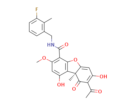 - Name: (9aS)-8-Acetyl-N-(3-fluoro-2-methylbenzyl)-1,7-dihydroxy-3-methoxy-9a-methyl-9-oxo-9,9a-dihydrodibenzo[b,d]furan-4-carboxamide