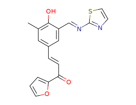 - Synonyms:(E)-1-(furan-2-yl)-3-(4-hydroxy-3-methyl-5-((E)-(thiazol-2-ylimino)methyl)phenyl)prop-2-en-1-one