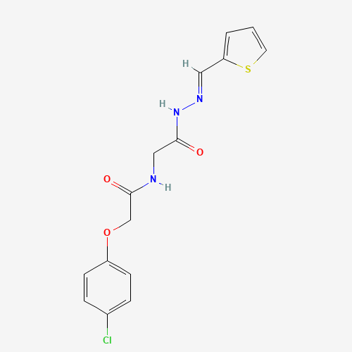 - Name: (E)-2-(4-chlorophenoxy)-N-(2-oxo-2-(2-(thiophen-2-ylmethylene)hydrazinyl)ethyl)acetamide