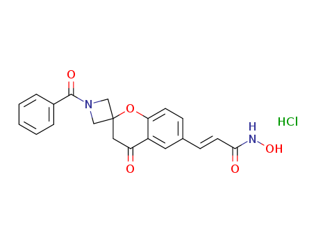 - Synonyms:(E)-3-[1'-benzoyl-4-oxospiro(chromane-2,3’-azetidine)-6-yl]-N-hydroxyacrylamide hydrochloride