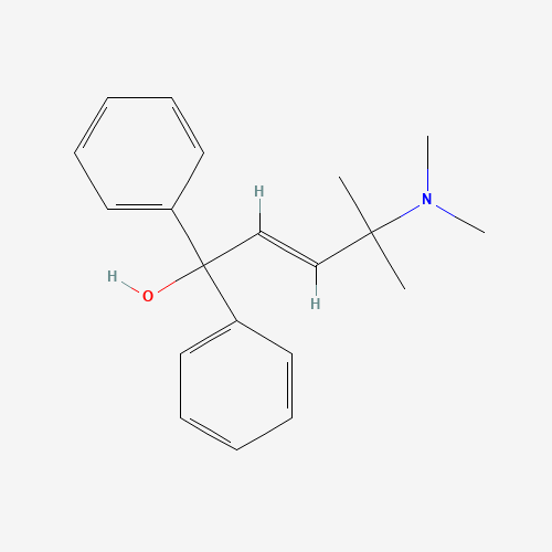 - Synonyms:(2E)-4-(dimethylamino)-4-methyl-1,1-diphenylpent-2-en-1-ol;371225-03-5;Cambridge id 6825908;MLS000767132;CHEMBL1468215;(E)-4-(dimethylamino)-4-methyl-1,1-diphenylpent-2-en-1-ol;DTXSID101333154;STK539587;AKOS005469915;CCG-327823;SMR000429450;AB00120560-01;(E)-4-Dimethylamino-4-methyl-1,1-diphenyl-pent-2-en-1-ol