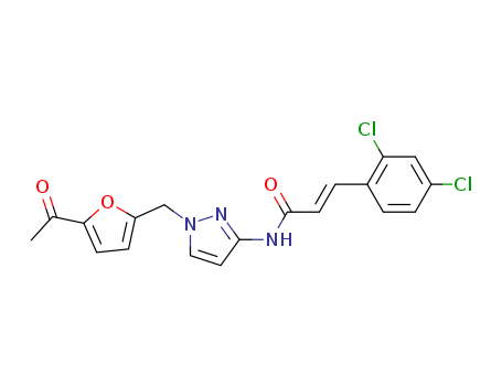 (E)-N-[1-(5-acetyl-furan-2-ylmethyl)-1H-pyrazol-3-yl]-3-(2,4-dichloro-phenyl)-acrylamide(1163255-66-0)