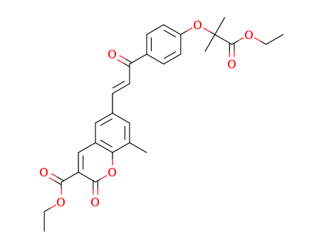 - Synonyms:(E)-ethyl 6-(3-(4-(1-ethoxy-2-methyl-1-oxopropan-2-yloxy)phenyl)-3-oxoprop-1-enyl)-8-methyl-2-oxo-2H-chromene-3-carboxylate