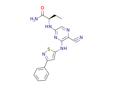 - Synonyms:(R)-2-(5-cyano-6-(3-phenylisothiazol-5-ylamino)pyrazin-2-ylamino)butanamide