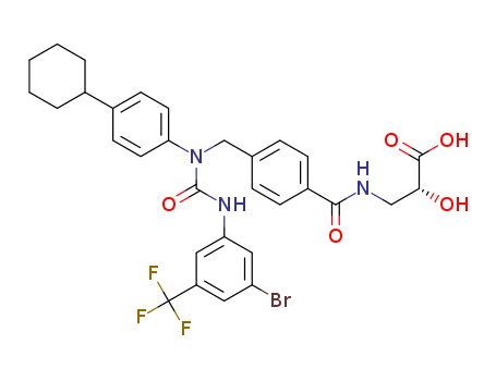 (R)-3-{4-[3-(3-Bromo-5-trifluoromethylphenyl)-1-(4-cyclohexylphenyl)ureidomethyl]benzoyl-amino}-2-hydroxypropionic acid(385836-13-5)