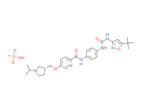 (R)-3-((6-(4-(3-(5-tert-butylisoxazol-3-yl)ureido)phenylcarbamoyl)pyridin-3-yloxy)methyl)-1-isopropylpyrrolidinium methanesulfonate(1351522-11-6)