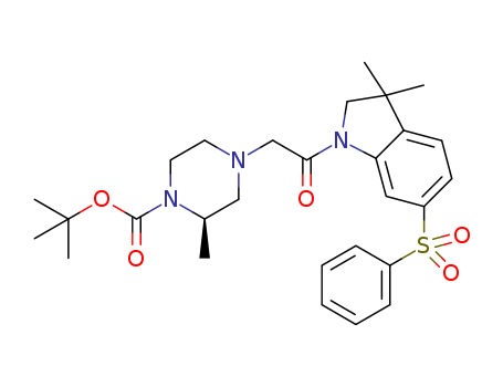 (R)-4-[2-(6-benzenesulfonyl-3,3-dimethyl-2,3-dihydro-indol-1-yl)-2-oxo-ethyl]-2-methyl-piperazine-1-carboxylic acid tert-butyl ester(1403899-93-3)