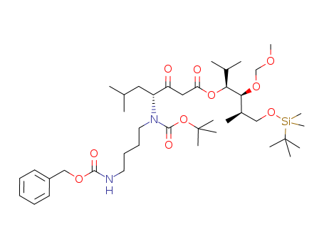 (R)-4-[(4-Benzyloxycarbonylamino-butyl)-tert-butoxycarbonyl-amino]-6-methyl-3-oxo-heptanoic acid (1S,2S,3R)-4-(tert-butyl-dimethyl-silanyloxy)-1-isopropyl-2-methoxymethoxy-3-methyl-butyl ester(192211-75-9)