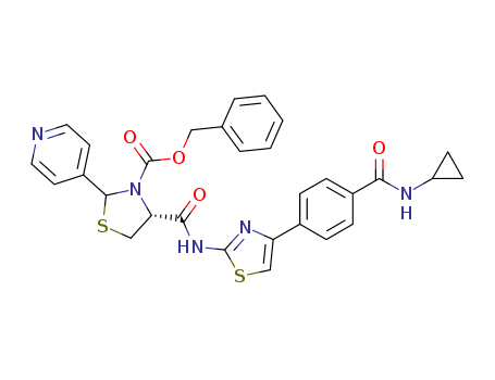 - Synonyms:(R)-4-[4-(4-cyclopropylcarbamoyl-phenyl)-thiazol-2-ylcarbamoyl]-2-pyridin-4-yl-thiazolidine-3-carboxylic acid benzyl ester