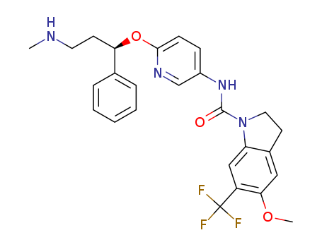 - Synonyms:(R)-5-methoxy-N-(6-(3-(methylamino)-1-phenylpropoxy)pyridin-3-yl)-6-(trifluoromethyl)indoline-1-carboxamide