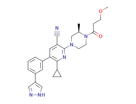 (R)-6-cyclopropyl-2-[4-(3-methoxy-propionyl)-3-methyl-piperazin-1-yl]-5-[3-(1H-pyrazol-4-yl)-phenyl]-nicotinonitrile(1416142-38-5)