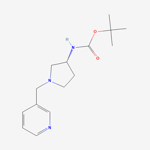 - Synonyms:1286207-93-9;(R)-tert-Butyl 1-(pyridin-3-ylmethyl)pyrrolidin-3-ylcarbamate;(R)-tert-butyl (1-(pyridin-3-ylmethyl)pyrrolidin-3-yl)carbamate;TERT-BUTYL N-[(3R)-1-(PYRIDIN-3-YLMETHYL)PYRROLIDIN-3-YL]CARBAMATE;(R)-tert-Butyl(1-(pyridin-3-ylmethyl)pyrrolidin-3-yl)carbamate;DTXSID801126962;KS-6421;Carbamic acid, N-[(3R)-1-(3-pyridinylmethyl)-3-pyrrolidinyl]-, 1,1-dimethylethyl ester