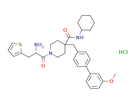 - Synonyms:(S)-1-(2-amino-3-(thiophen-2-yl)propanoyl)-N-cyclohexyl-4-((3'-methoxybiphenyl-4-yl)methyl)piperidine-4-carboxamide hydrochloride