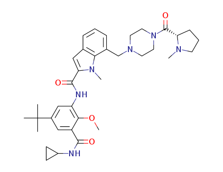 - Name: (S)-1-methyl-7-[4-(1-methyl-pyrrolidine-2-carbonyl)-piperazin-1-ylmethyl]-1H-indole-2-carboxylic acid-(5-tert-butyl-3-cyclopropylcarbamoyl-2-methoxy-phenyl)-amide