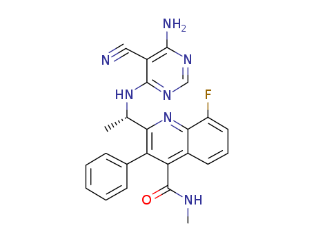 - Synonyms:(S)-2-(1-(6-amino-5-cyanopyrimidin-4-ylamino)ethyl)-8-fluoro-N-methyl-3-phenylquinoline-4-carboxamide