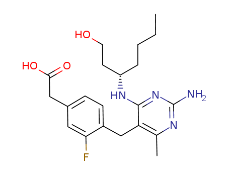 - Synonyms:(S)-2-(4-((2-amino-4-(1-hydroxyheptan-3-ylamino)-6-methylpyrimidin-5-yl)methyl)-3-fluorophenyl)acetic acid
