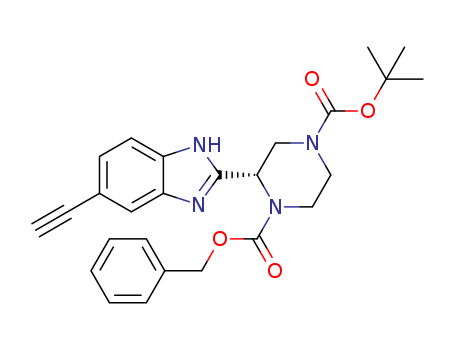 - Synonyms:(S)-2-(5-ethynyl-1H-benzoimidazol-2-yl)-piperazine-1,4-dicarboxylic acid 1-benzyl ester 4-tert-butyl ester