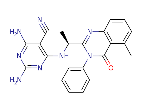 - Name: (S)-2,4-diamino-6-(1-(5-methyl-4-oxo-3-phenyl-3,4-dihydroquinazolin-2-yl)ethylamino)pyrimidine-5-carbonitrile