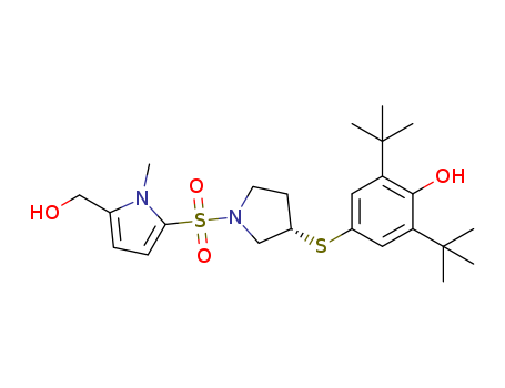 (S)-2,6-di-tert-butyl-4-[1-(5-hydroxymethyl-1-methyl-1H-pyrrole-2-sulfonyl)-pyrrolidin-3-ylsulfanyl]-phenol(1073186-83-0)