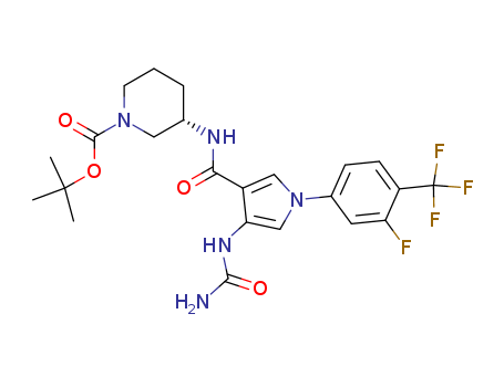 (S)-3-{[1-(3-fluoro-4-trifluoromethylphenyl)-4-ureido-1H-pyrrole-3-carbonyl]-amino}-piperidine-1-carboxylic acid tert-butyl ester(1201496-23-2)