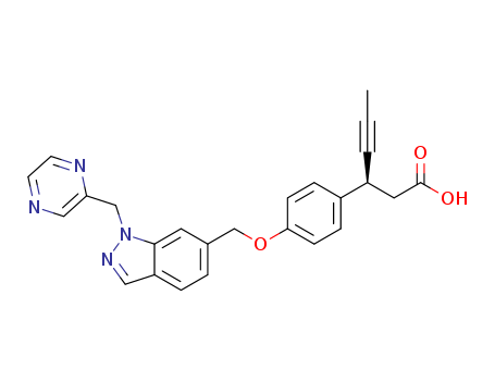 - Name: (S)-3-[4-(1-pyrazin-2-ylmethyl-1H-indazol-6-ylmethoxy)phenyl]hex-4-ynoic acid