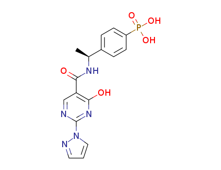 - Synonyms:(S)-4-(1-(4-hydroxy-2-(1H-pyrazol-1-yl)pyrimidine-5-carboxamido)ethyl)phenyl phosphonic acid