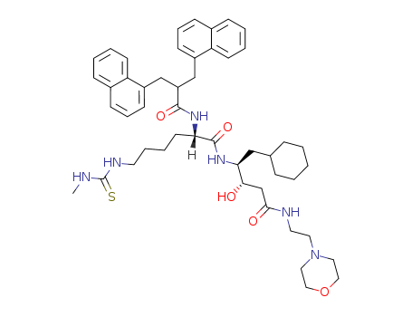 - 132101-75-8/(S)-6-(3-Methyl-thioureido)-2-(3-naphthalen-1-yl-2-naphthalen-1-ylmethyl-propionylamino)-hexanoic acid [(1S,2S)-1-cyclohexylmethyl-2-hydroxy-3-(2-morpholin-4-yl-ethylcarbamoyl)-propyl]-amide