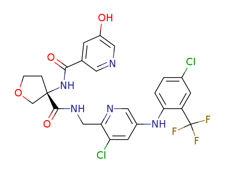 (S)-N-(3-{[3-chloro-5-(4-chloro-2-trifluoromethyl-phenylamino)-pyridin-2-yl-methyl]-carbamoyl}-tetrahydrofuran-3-yl)-5-hydroxy-nicotinamide(1242454-66-5)