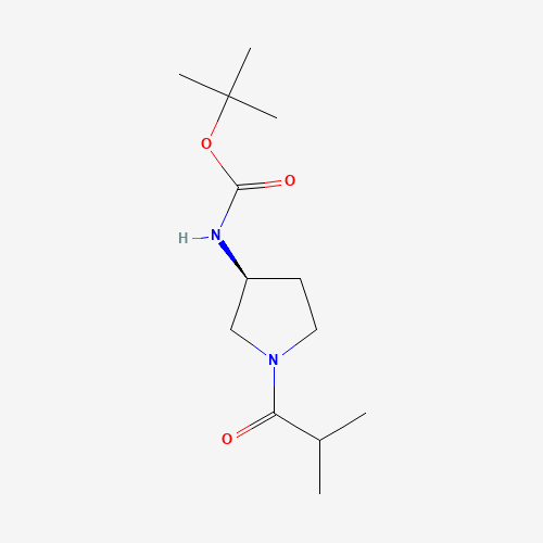 - Synonyms:1286208-44-3;(S)-tert-Butyl 1-isobutyrylpyrrolidin-3-ylcarbamate;tert-butyl N-[(3S)-1-(2-methylpropanoyl)pyrrolidin-3-yl]carbamate;(S)-tert-Butyl (1-isobutyrylpyrrolidin-3-yl)carbamate;(S)-tert-Butyl(1-isobutyrylpyrrolidin-3-yl)carbamate;SCHEMBL18820638;DTXSID301122727;KS-6453;Carbamic acid, N-[(3S)-1-(2-methyl-1-oxopropyl)-3-pyrrolidinyl]-, 1,1-dimethylethyl ester