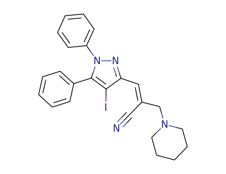 - Synonyms:(Z)-3-(4-iodo-1,5-diphenyl-1H-pyrazol-3-yl)-2-(piperidin-1-ylmethyl)prop-2-enenitrile