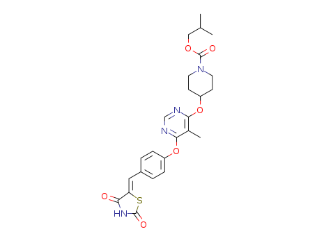 - Synonyms:(Z)-iso-butyl 4-((6-(4-((2,4-dioxothiazolidin-5-ylidene)methyl)phenoxy)-5-methylpyrimidin-4-yl)oxy)piperidine-1-carboxylate