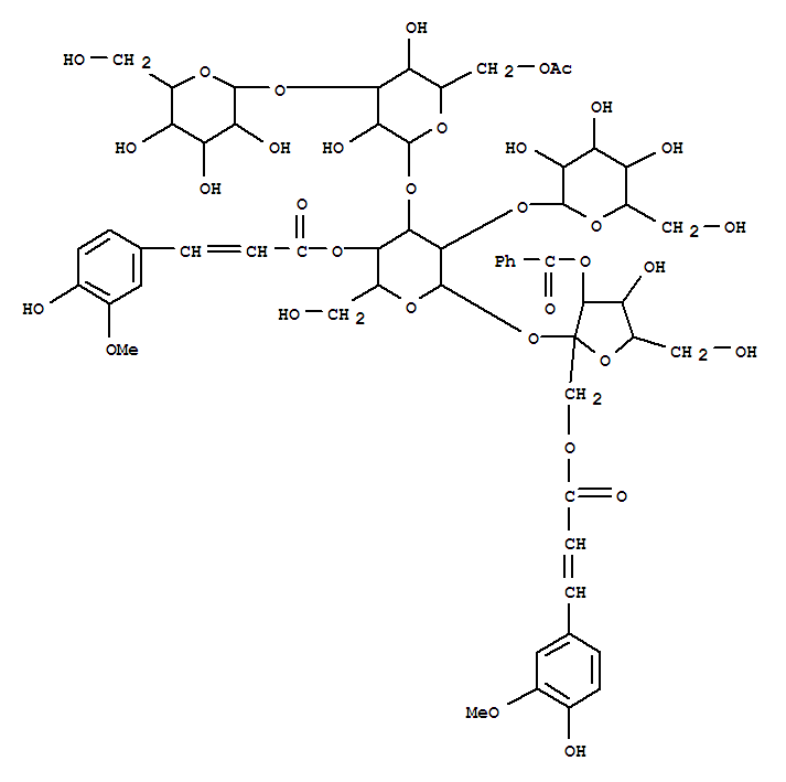a-D-Glucopyranoside,3-O-benzoyl-1-O-[(2E)-3-(4-hydroxy-3-methoxyphenyl)-1-oxo-2-propenyl]-b-D-fructofuranosyl O-b-D-glucopyranosyl-(1®2)-O-[O-b-D-glucopyranosyl-(1®3)-6-O-acetyl-b-D-glucopyranosyl-(1®3)]-,4-[(2E)-3-(4-hydroxy-3-methoxyphenyl)-2-propenoate] (9CI)(147742-21-0)