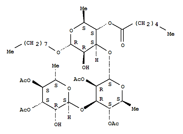 a-L-Mannopyranoside, octylO-3,4-di-O-acetyl-6-deoxy-a-L-mannopyranosyl-(1®3)-O-2,4-di-O-acetyl-6-deoxy-a-L-mannopyranosyl-(1®3)-6-deoxy-, 4-hexanoate(129832-67-3)