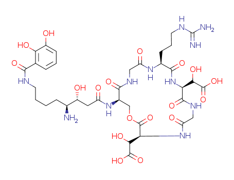 - Synonyms:AlterobactinA (9CI); 1-Oxa-4,7,10,13,16-pentaazacyclononadecane, cyclic peptide deriv.;L-Aspartic acid,N-[N-[N-[N2-[N-[N-[4-amino-8-[(2,3-dihydroxybenzoyl)amino]-3-hydroxy-1-oxooctyl]-D-seryl]glycyl]-L-arginyl]-threo-3-hydroxy-L-a-aspartyl]glycyl]-3-hydroxy-, r-lactone, [threo-[S-(R*,S*)]]-