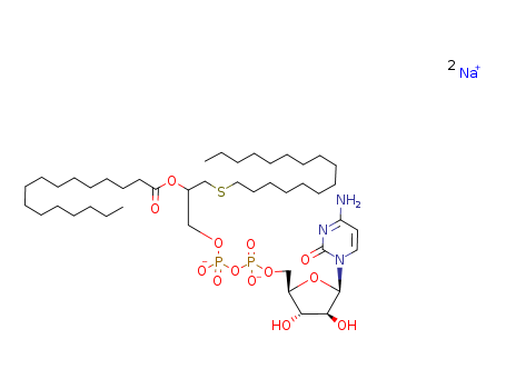 - Synonyms:2(1H)-Pyrimidinone,4-amino-1-[5-O-[1,3-dihydroxy-6-[(1-oxohexadecyl)oxy]-2,4-dioxa-8-thia-1,3-diphosphatetracos-1-yl]-b-D-arabinofuranosyl]-,P,P'-dioxide, disodium salt