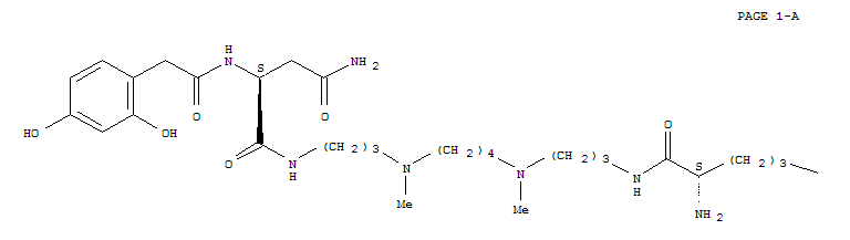 - Synonyms:Butanediamide,N1-(15,20-diamino-20-imino-4,9-dimethyl-14-oxo-4,9,13,19-tetraazaeicos-1-yl)-2-[[(2,4-dihydroxyphenyl)acetyl]amino]-,[S-(R*,R*)]-; Argiotoxin 673